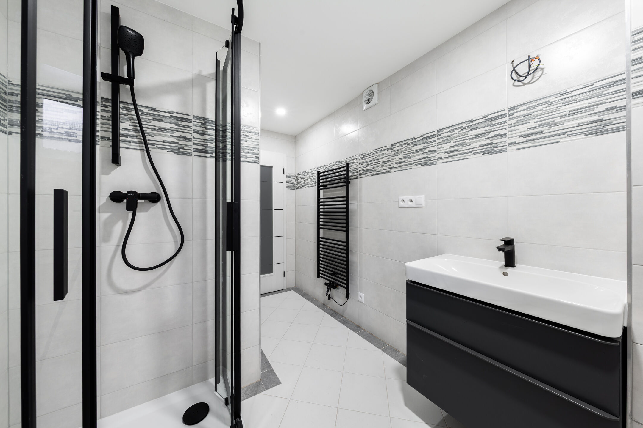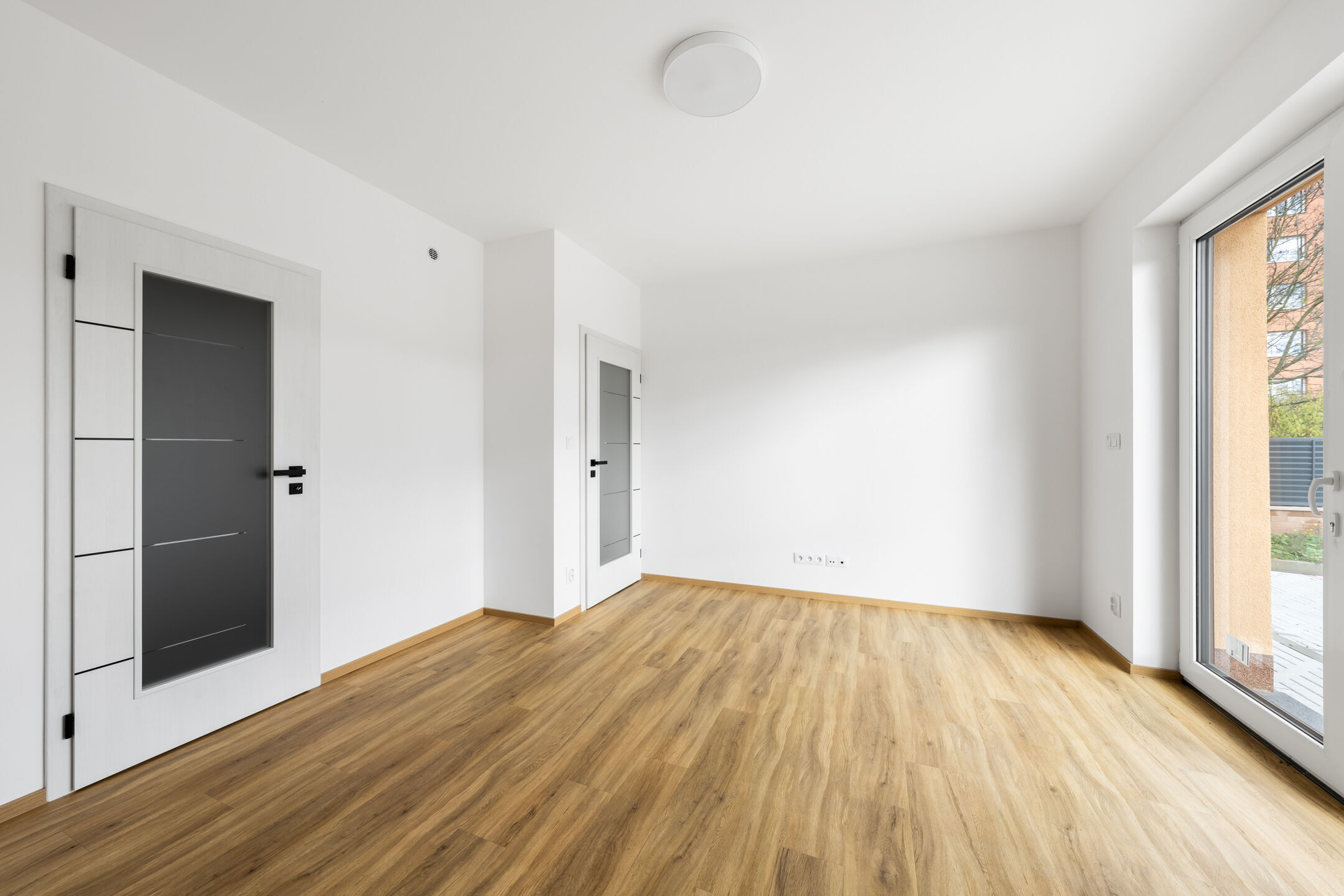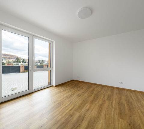 Jednotka je dokončena v nadstandardním provedení, které zahrnuje kompletní vnitřní rozvody a instalace, plastová okna s izolačním trojsklem doplněná o venkovní žaluzie, podlahové teplovodní vytápění v celém prostoru, v koupelně navíc rozšířené o topný žebřík. Interiér doplňují moderní interiérové dveře se zárubněmi, vinylové podlahy v kombinaci s keramickou dlažbou, stejně jako obklady i sanita od renomovaných výrobců. Pro instalaci kuchyňské linky je připravena kompletní přípojka elektřiny, vody a odpadu. Absence klasických radiátorů šetří prostor a umožňuje variabilnější uspořádání vybavení. Teplo i teplá voda jsou dodávány ústředně, přičemž spotřeba je měřena samostatně pro každou jednotku.