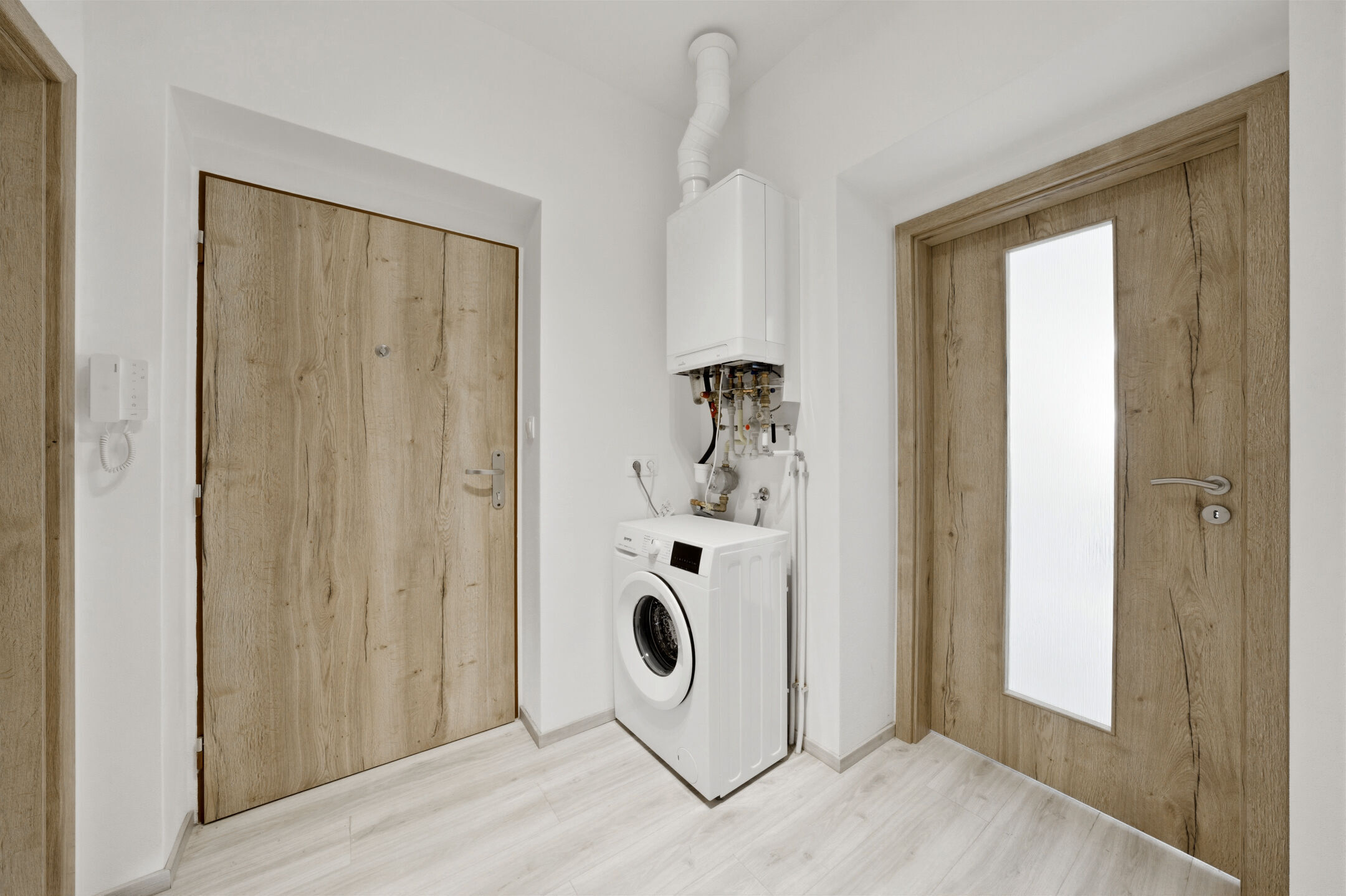 Vytápění a ohřev vody zajišťuje kombinovaný plynový kotel.