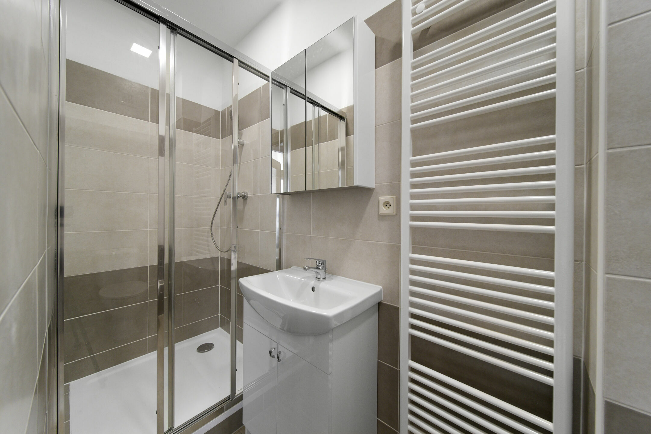 Byt je vytápěn tepelným čerpadlem a ohřev vody zajišťuje vlastní elektrický bojler. Sazba elektřiny pro tento byt je dvoutarifová. Střídání vyššího a nižšího tarifu (dříve známého jako noční proud) v průběhu dne přináší úsporu nákladů na ohřev vody i pro veškerý další odběr domácnosti.
