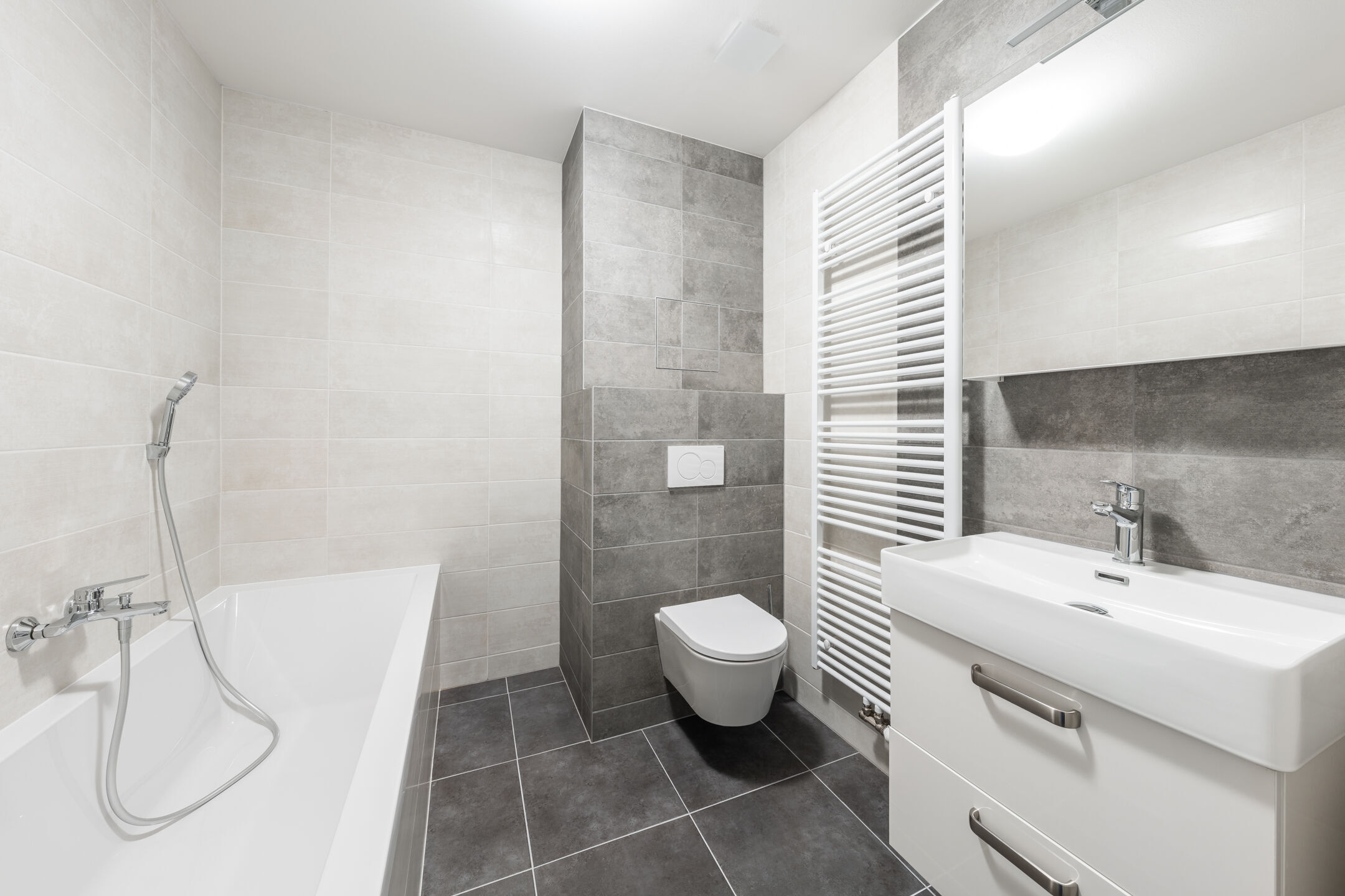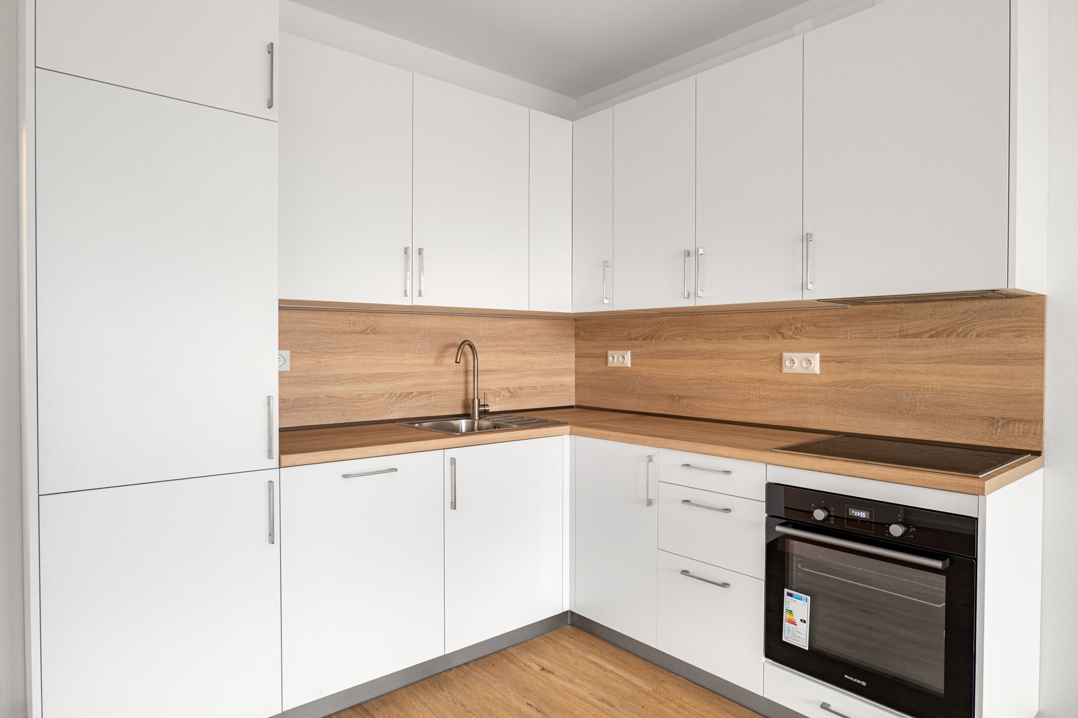 Byt je zařízený moderní kuchyňskou linkou včetně vestavné elektrické trouby, indukční varné desky, digestoře, myčky nádobí, ledničky a mrazáku. Součástí vybavení je také koupelnový nábytek či kompletní osvětlení.