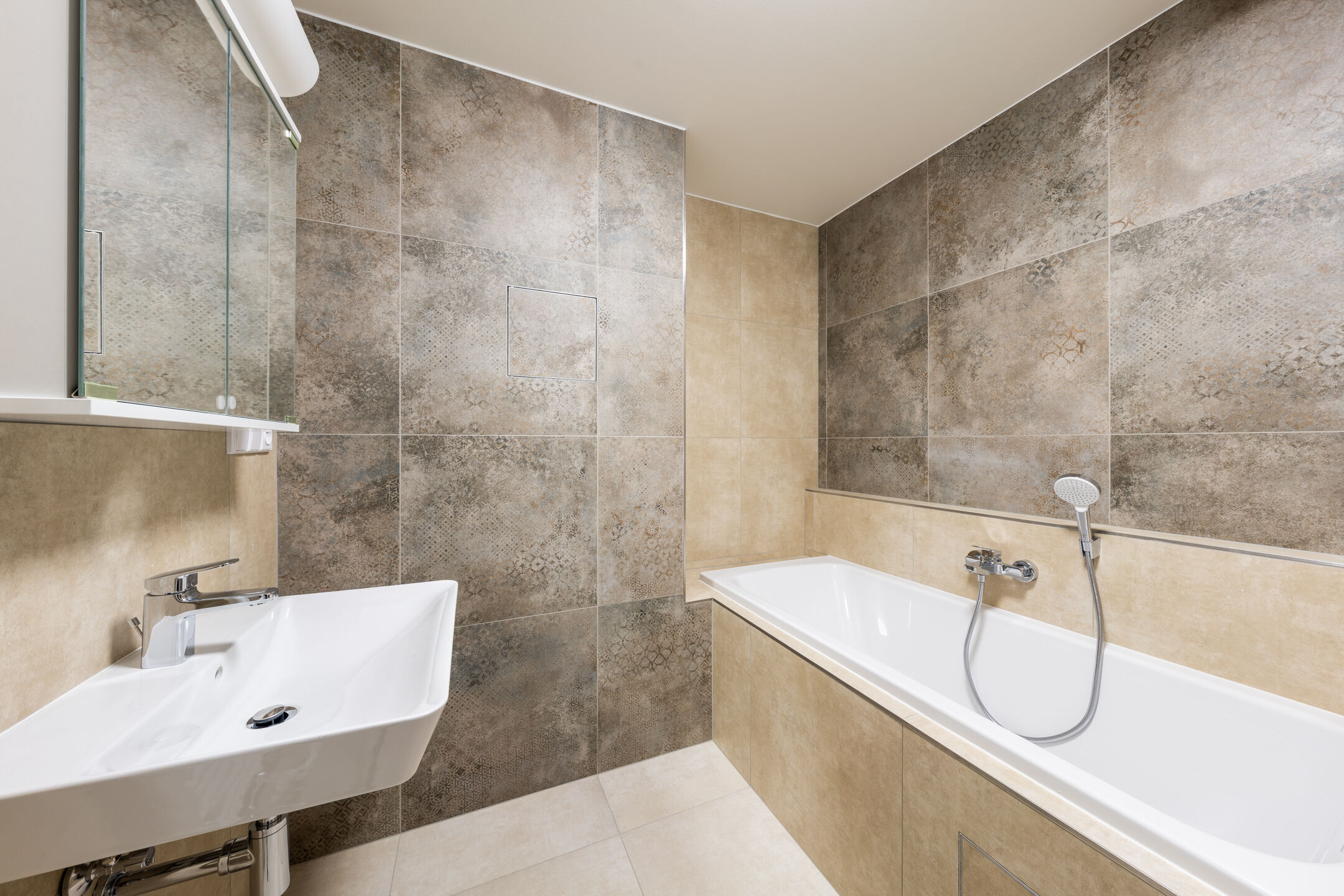Součástí vybavení bytu je moderní kuchyňská linka s vestavěnými spotřebiči, mezi které patří elektrická trouba, sklokeramická varná deska a digestoř. Myčka nádobí není součástí vybavení, avšak je možné ji do kuchyňské linky snadno doplnit vyjmutím jedné ze spodních skříněk.