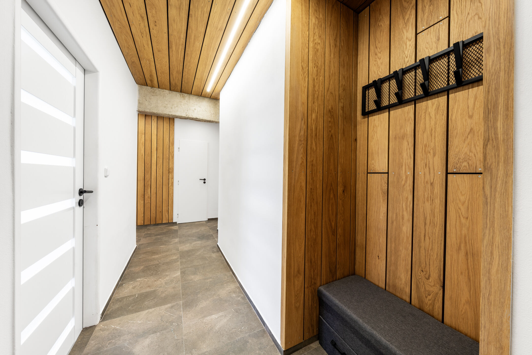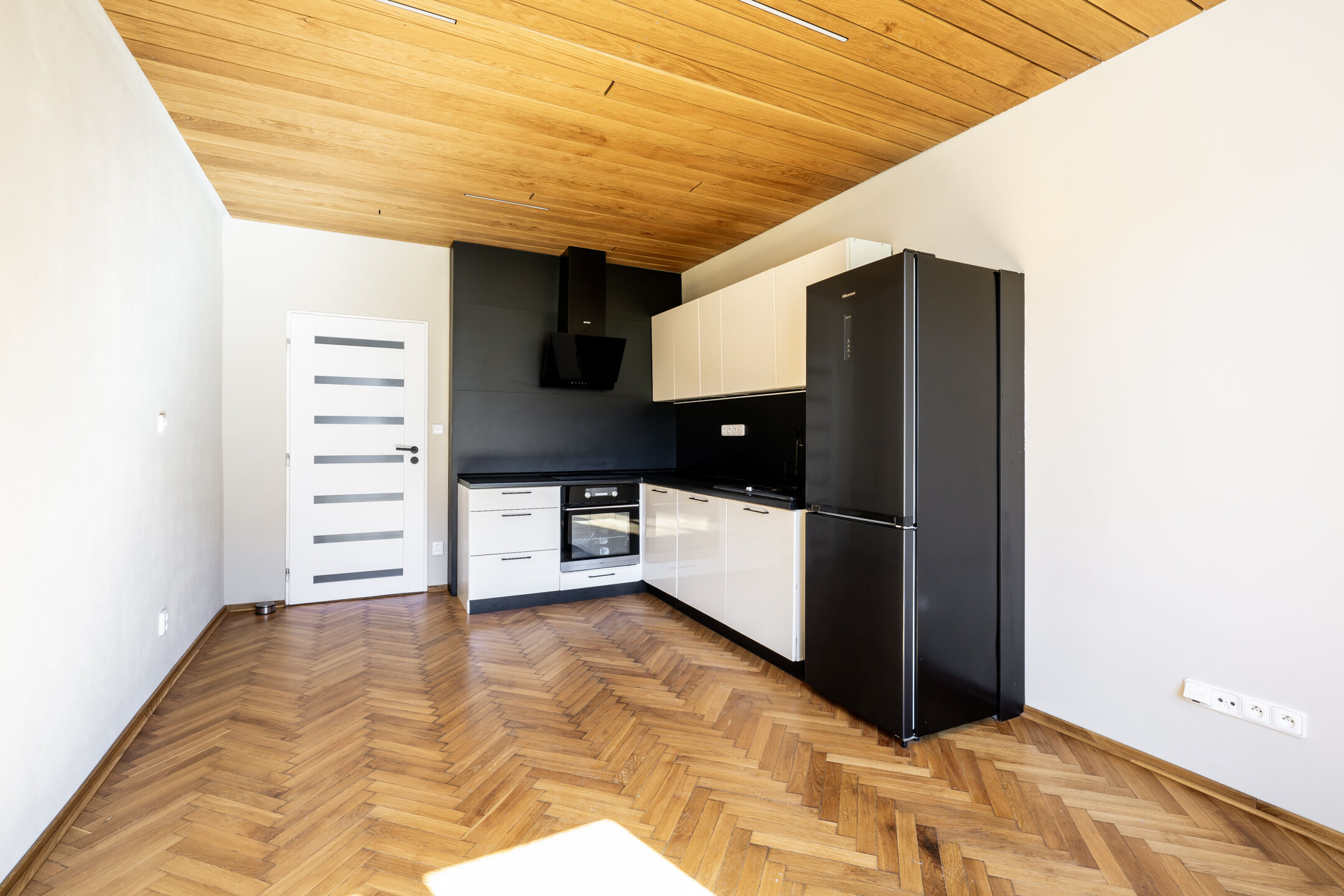 Byt je vybavený moderní kuchyňskou linkou včetně vestavné elektrické trouby, varné desky, digestoře, myčky nádobí a ledničkou s mrazákem. Součástí vybavení je také koupelnový nábytek, vnitřní žaluzie či kompletní osvětlení.