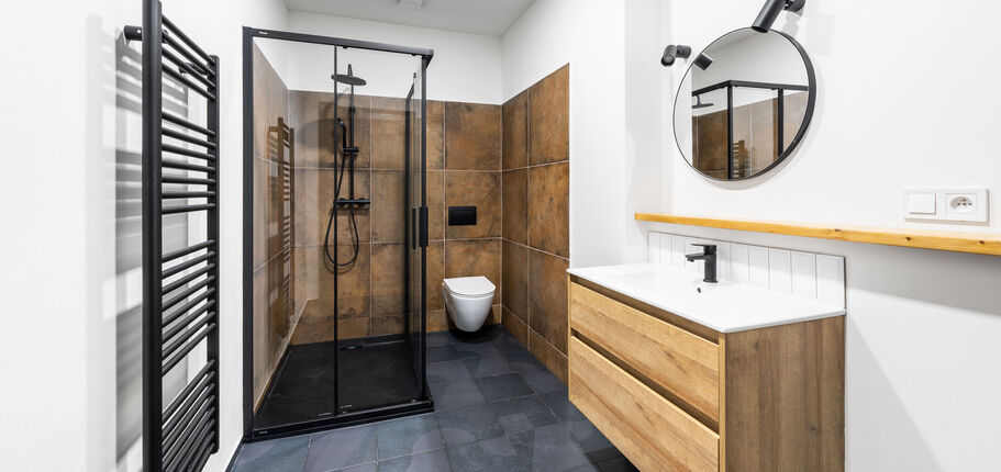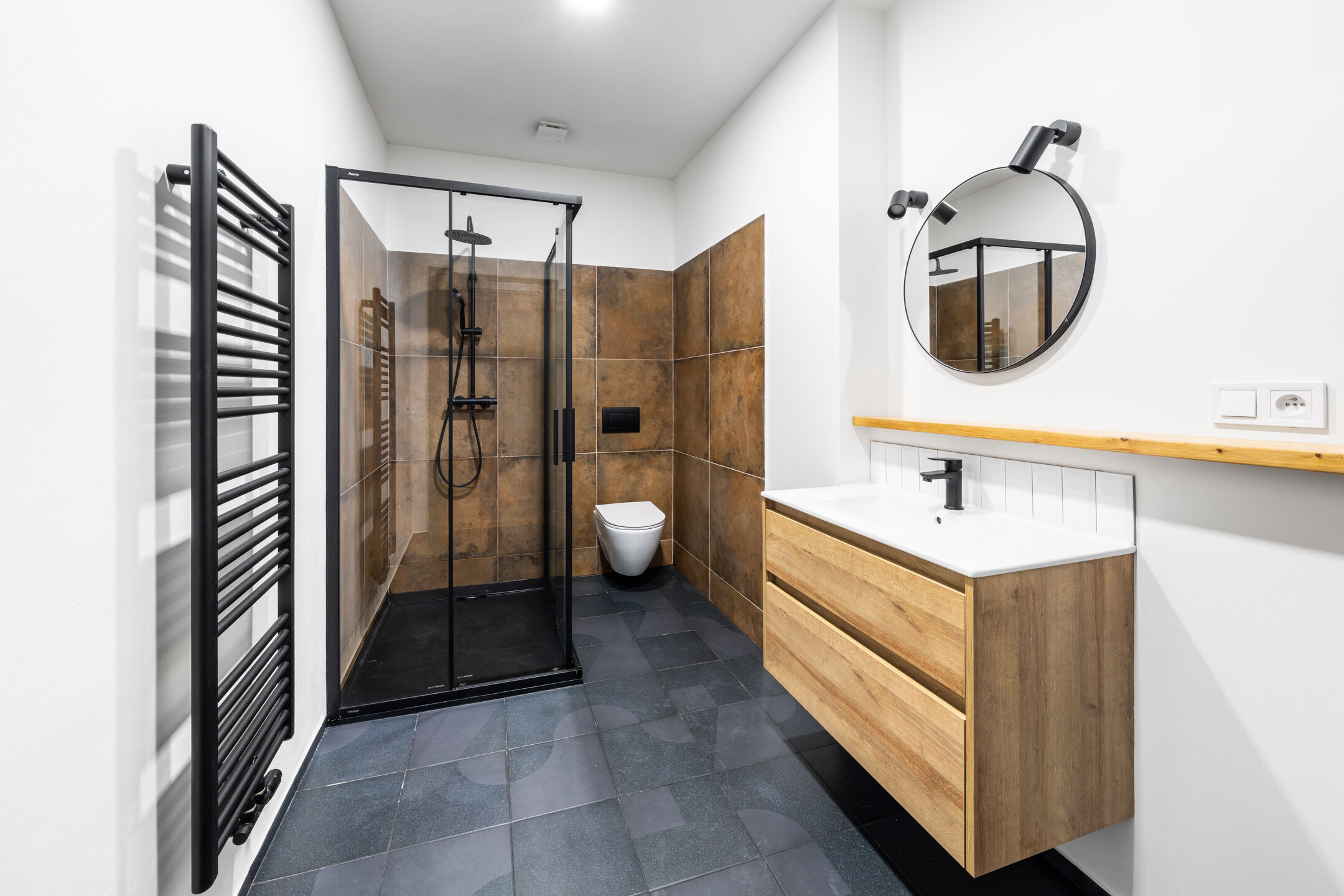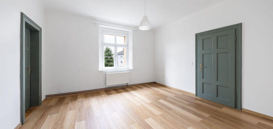 Pro zjištění rozměrů místností a objektů v prostoru využijte možnost měření ve virtuální prohlídce pomocí ikony pravítka v levém dolním rohu.