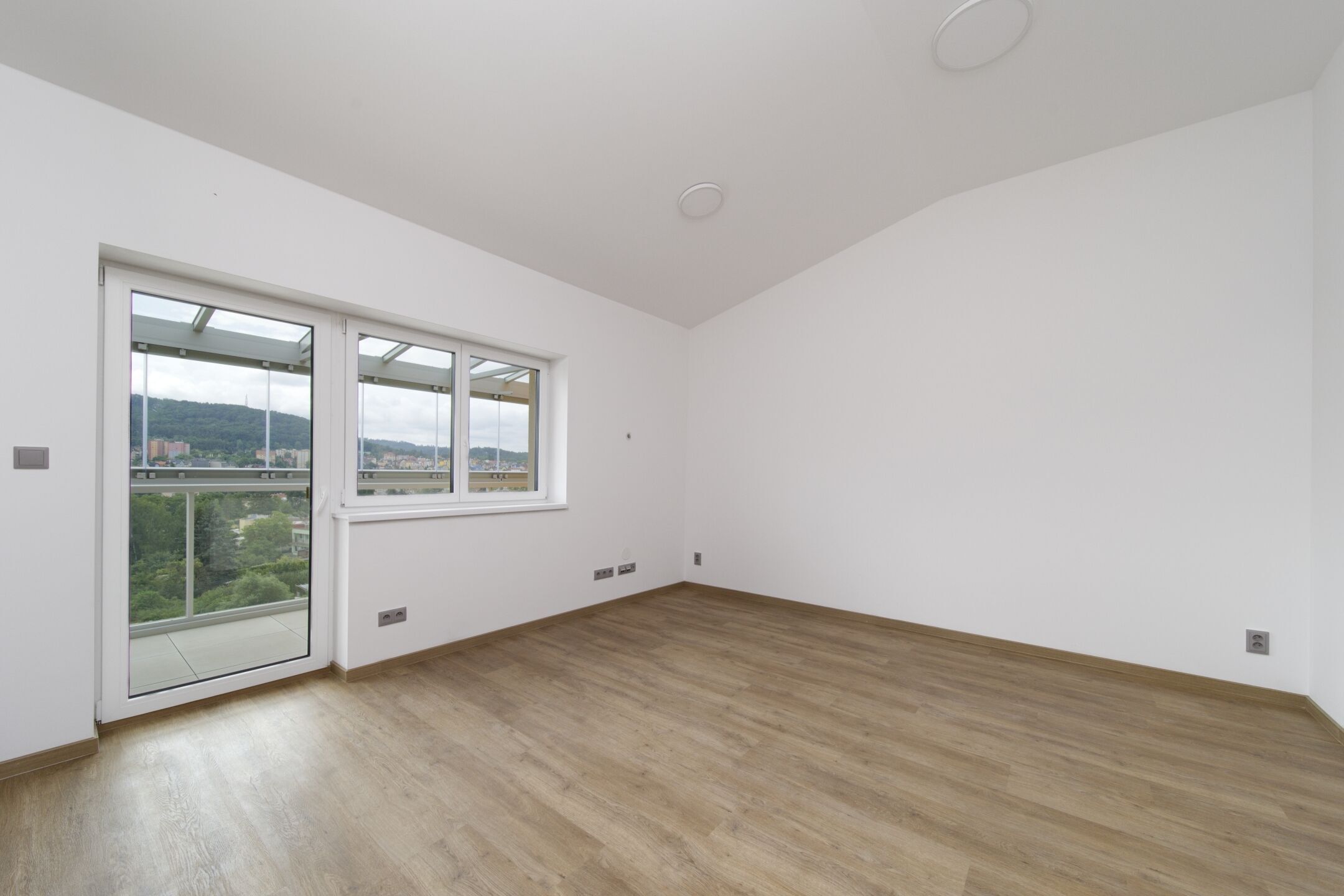 K dlouhodobému pronájmu nabízíme klimatizovaný byt 3+kk (71 m²) se zasklenou lodžií (9 m²) a vyhrazeným parkovacím stáním, situovaný v klidné části Karlových Varů v Bohaticích, ulice U Trati. Byt se nachází v nejvyšším 5. nadzemním podlaží energeticky úsporné novostavby (třída C).